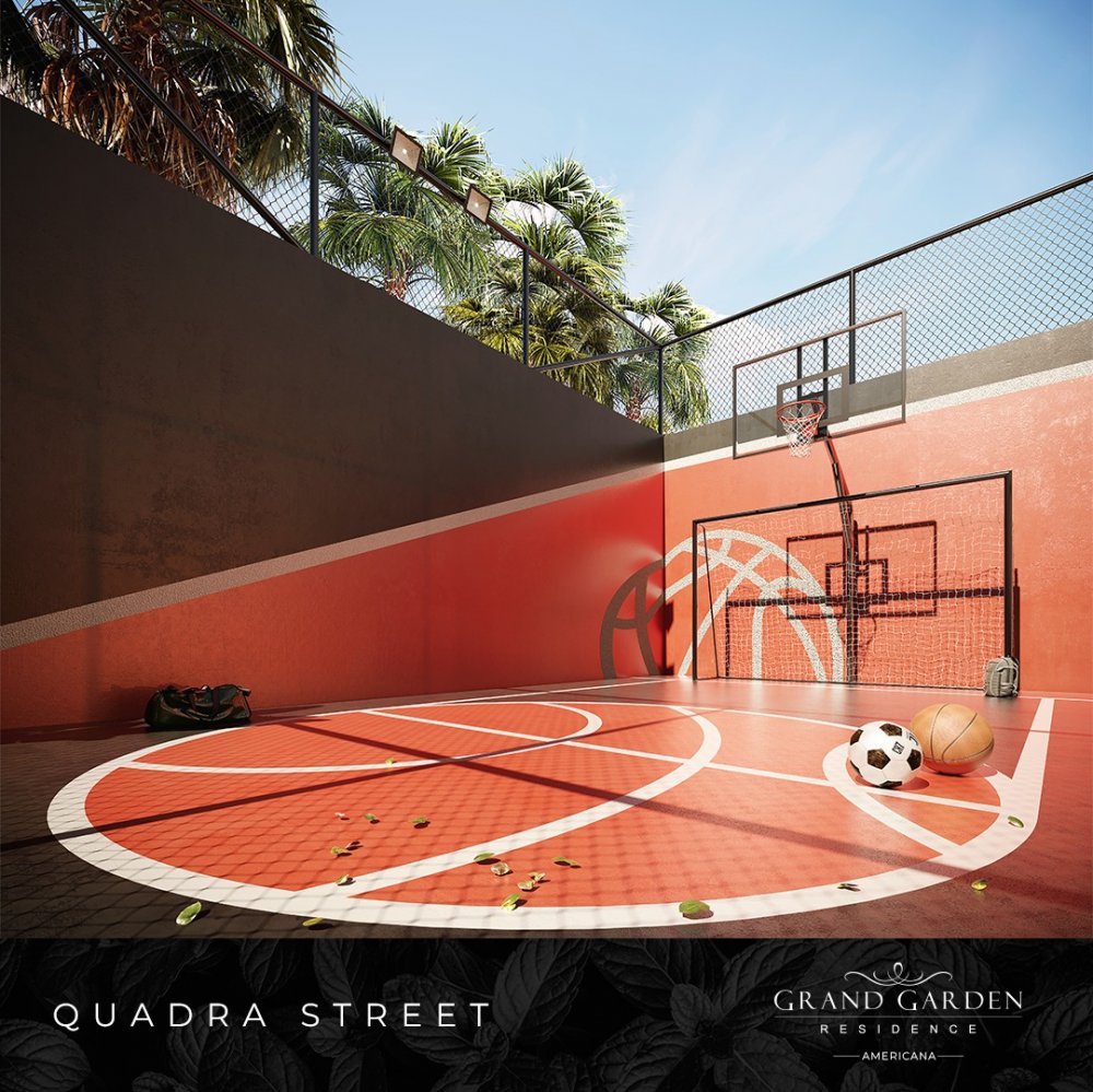 - Mini quadra de basquete e quadra de areia