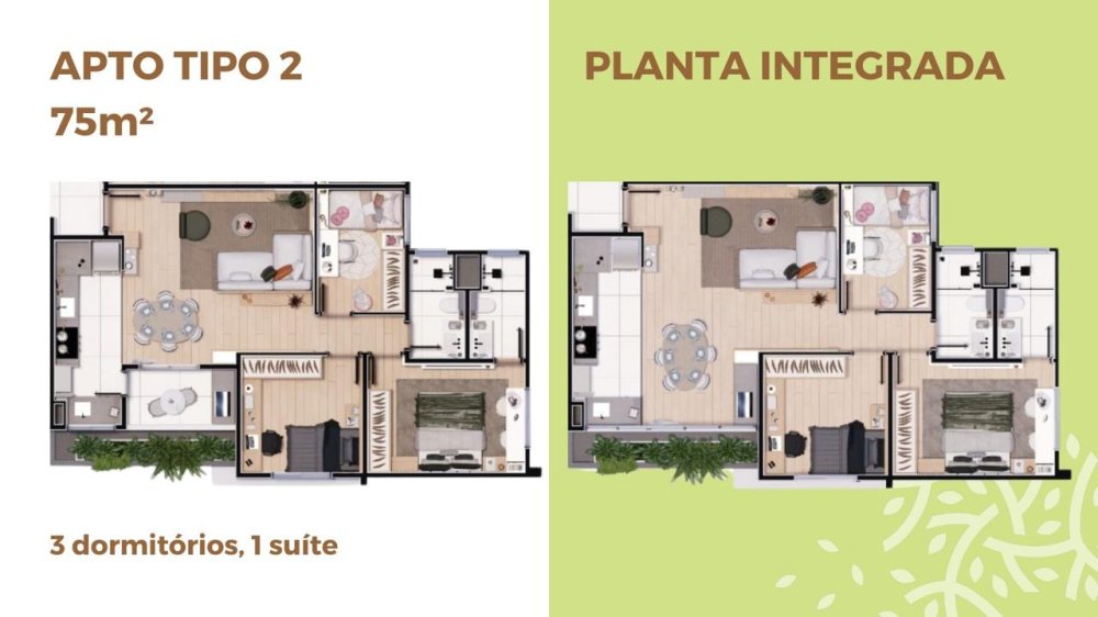•Apartamentos de 61,79M², 75M² e 81M².
